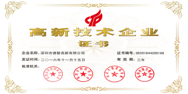 ●2015年榮獲“國家級高新技術企業”+“深圳市高新技術企業”資質